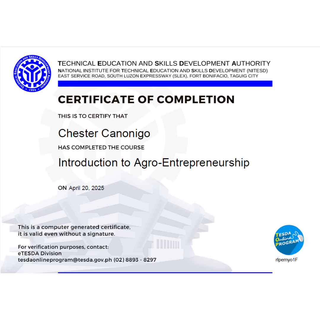 So, I went out to get myself certified through TESDA. I’m not done yet though.