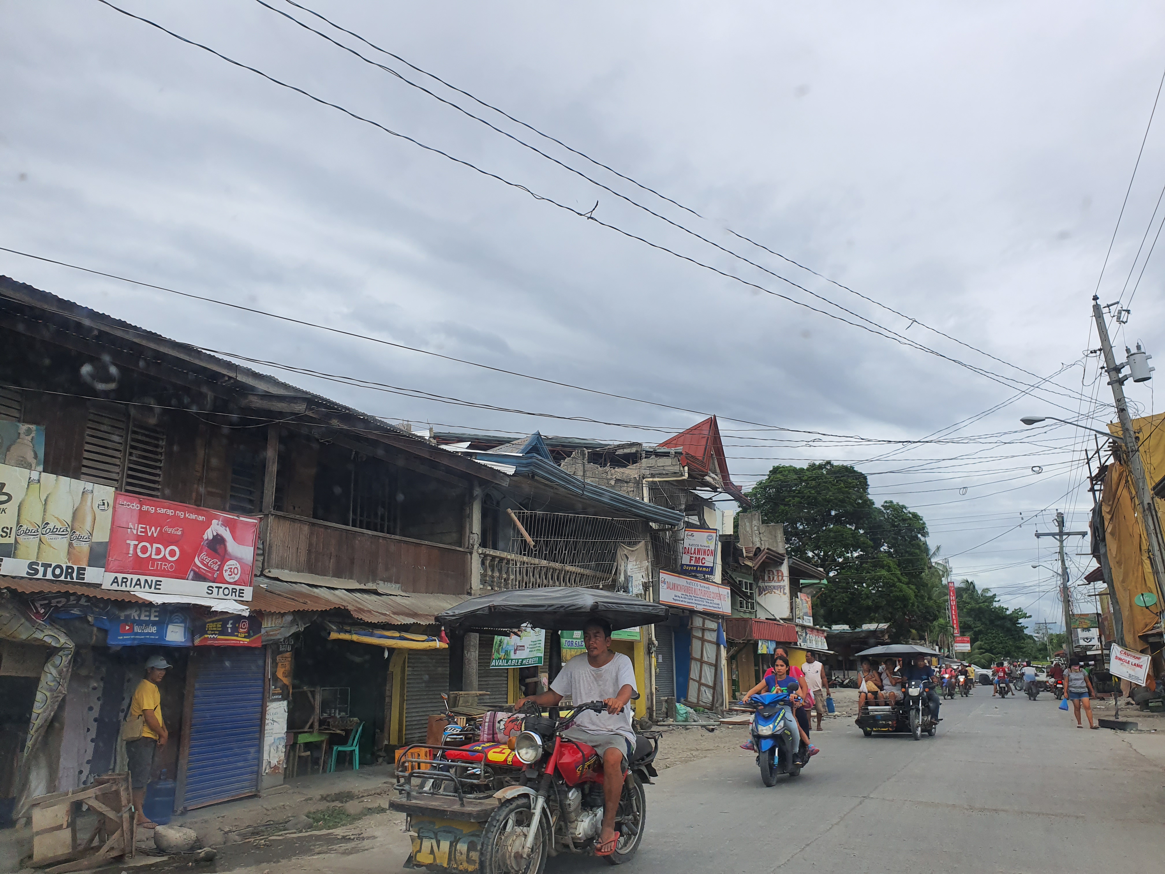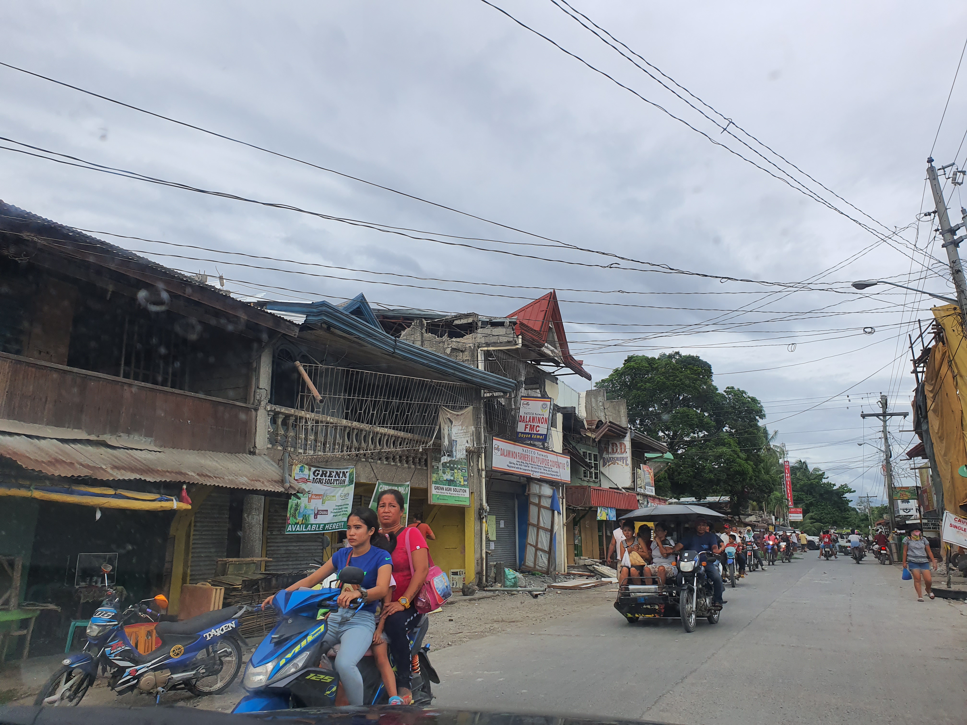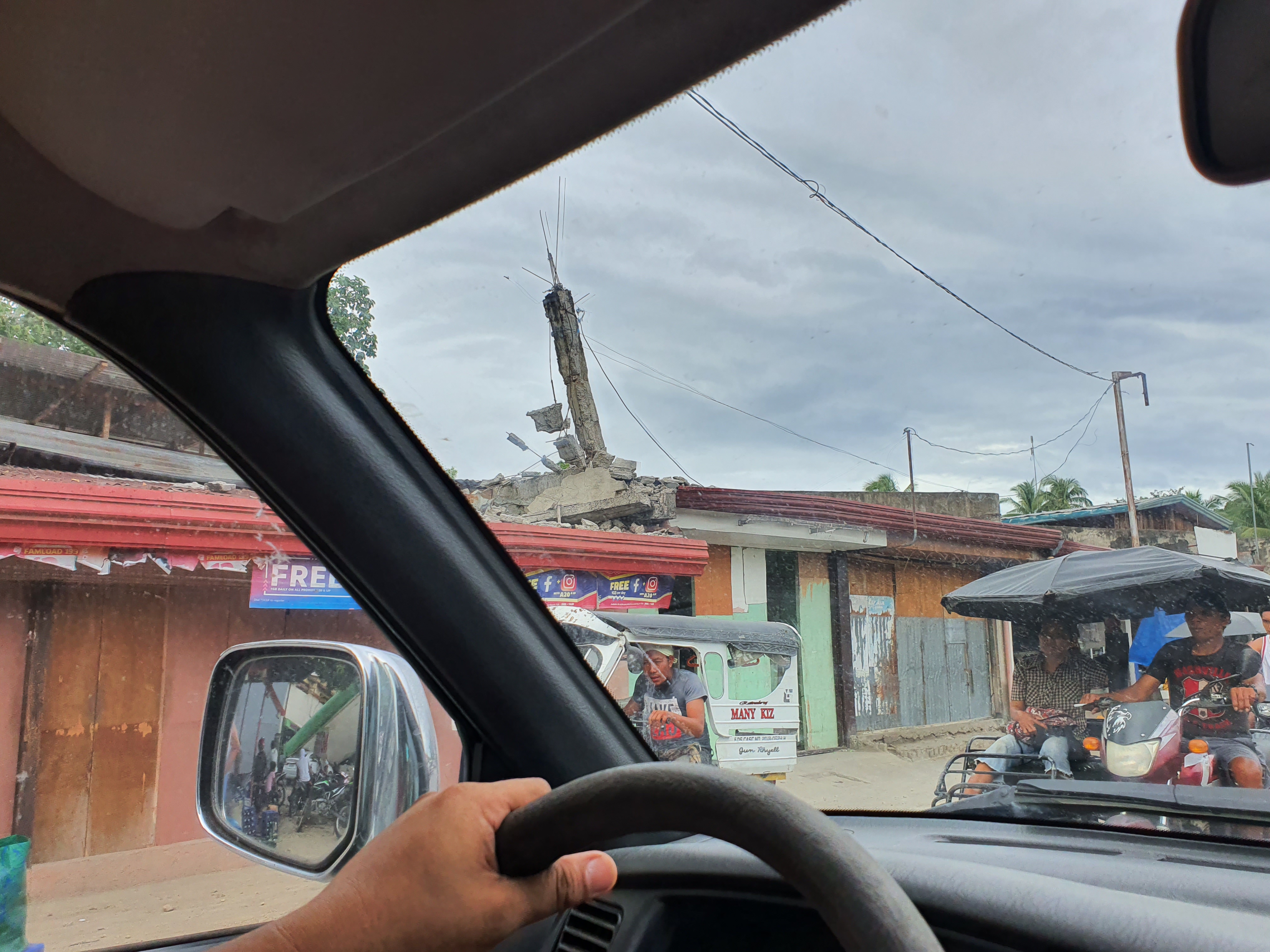 Everywhere we passed, destruction. To the left, chaos. To the right, disarray. In front of us, a long road with people lined up outside their houses. This is what a 6.9 magnitude quake is capable of.