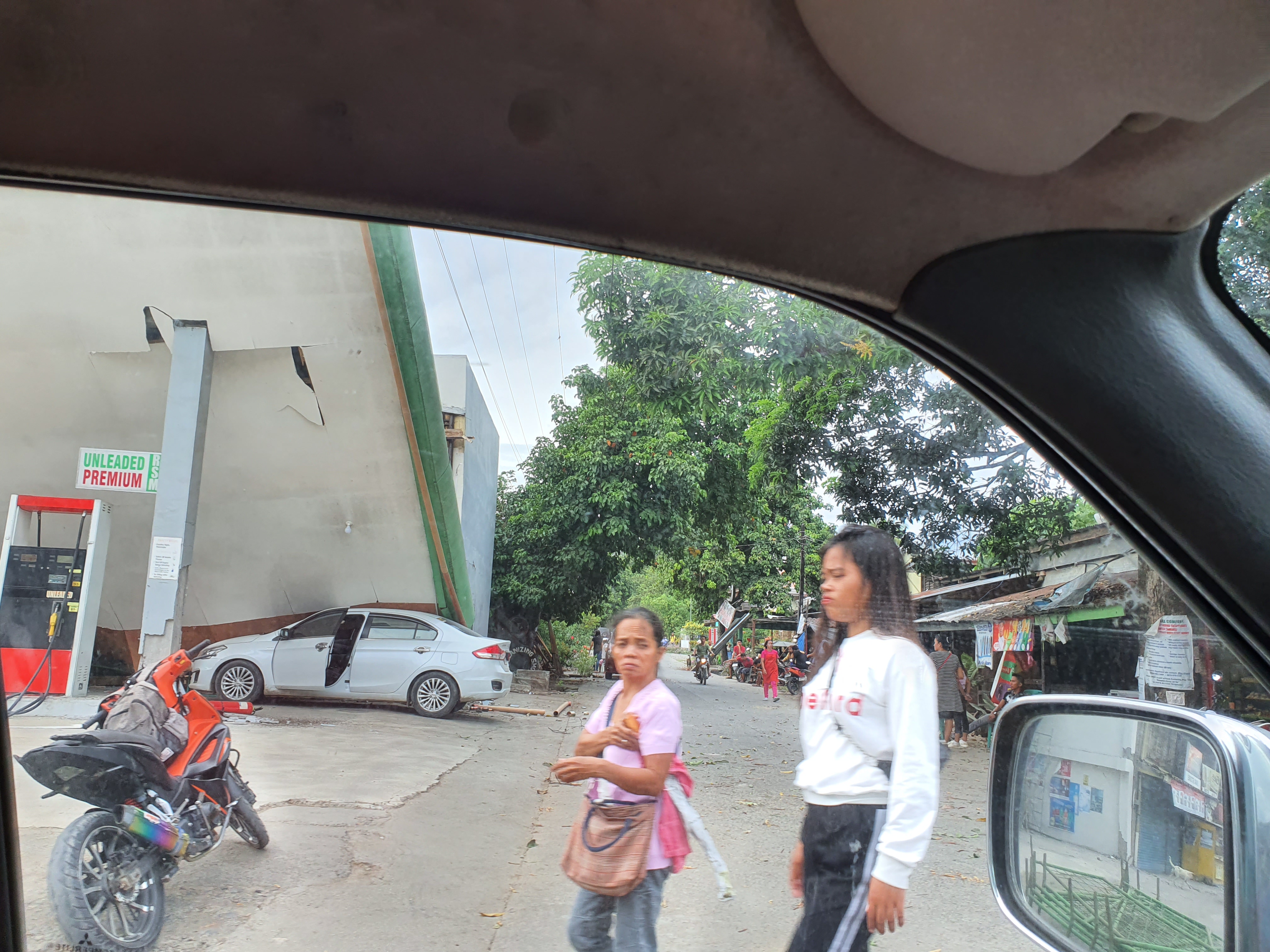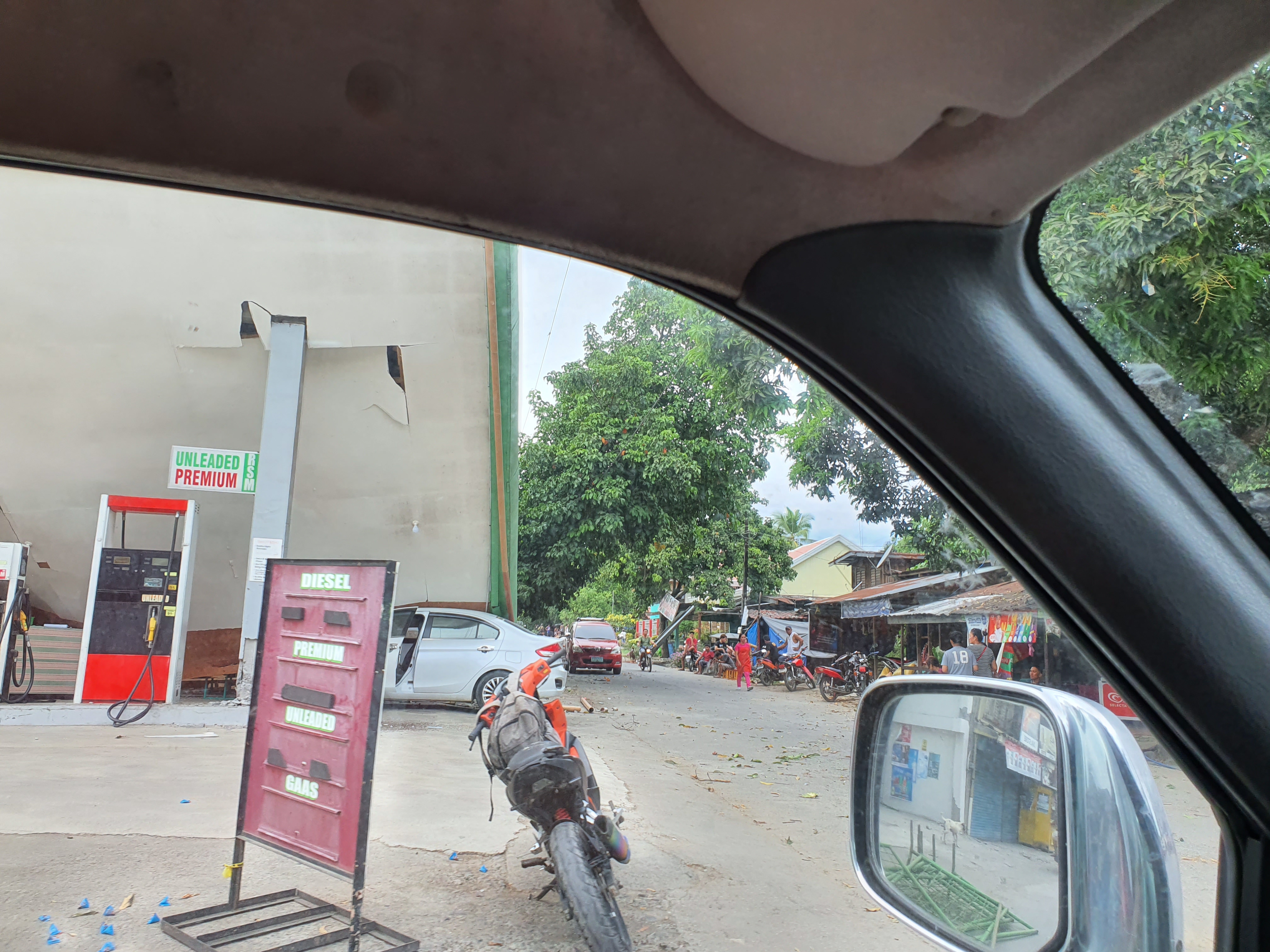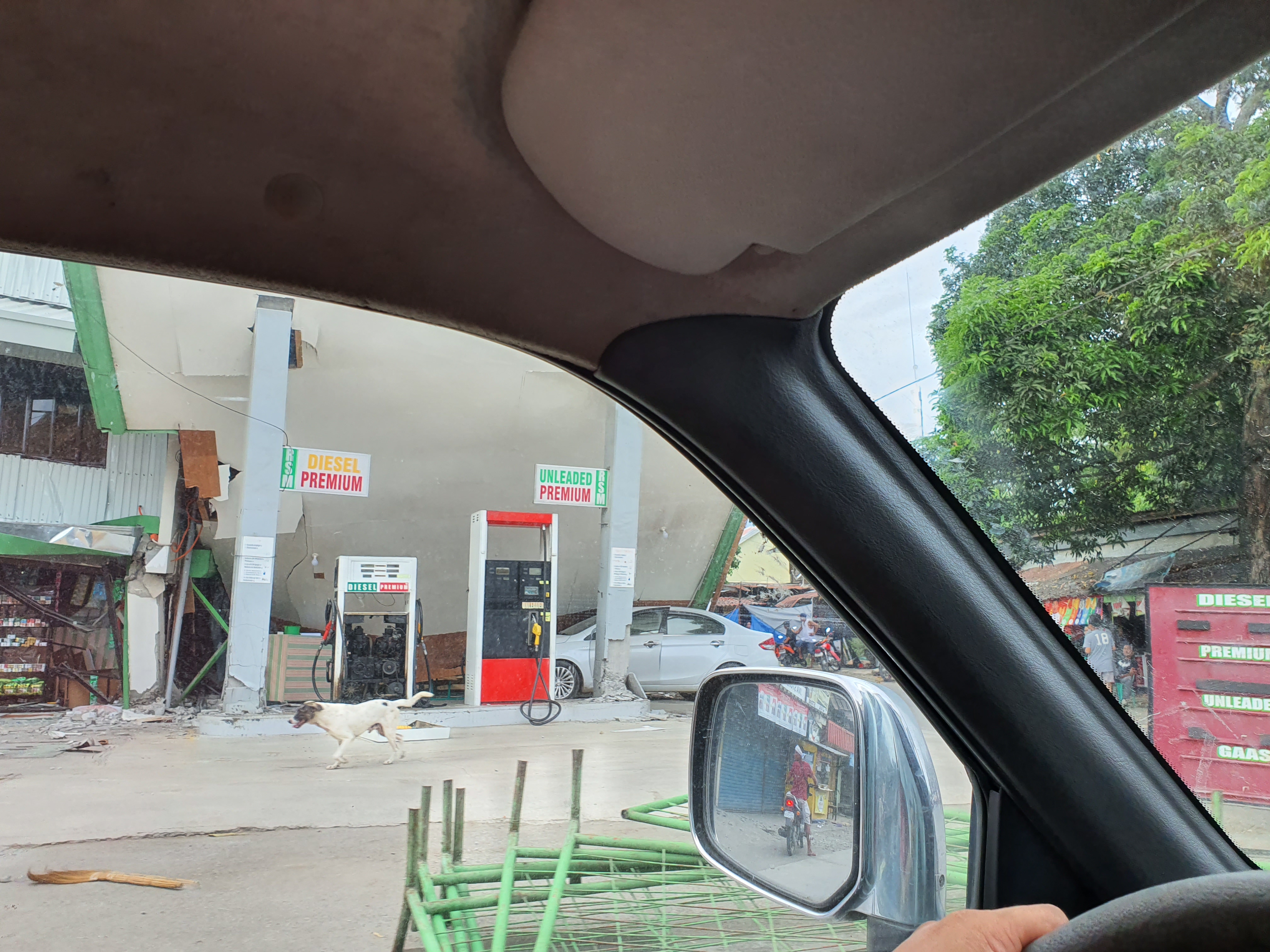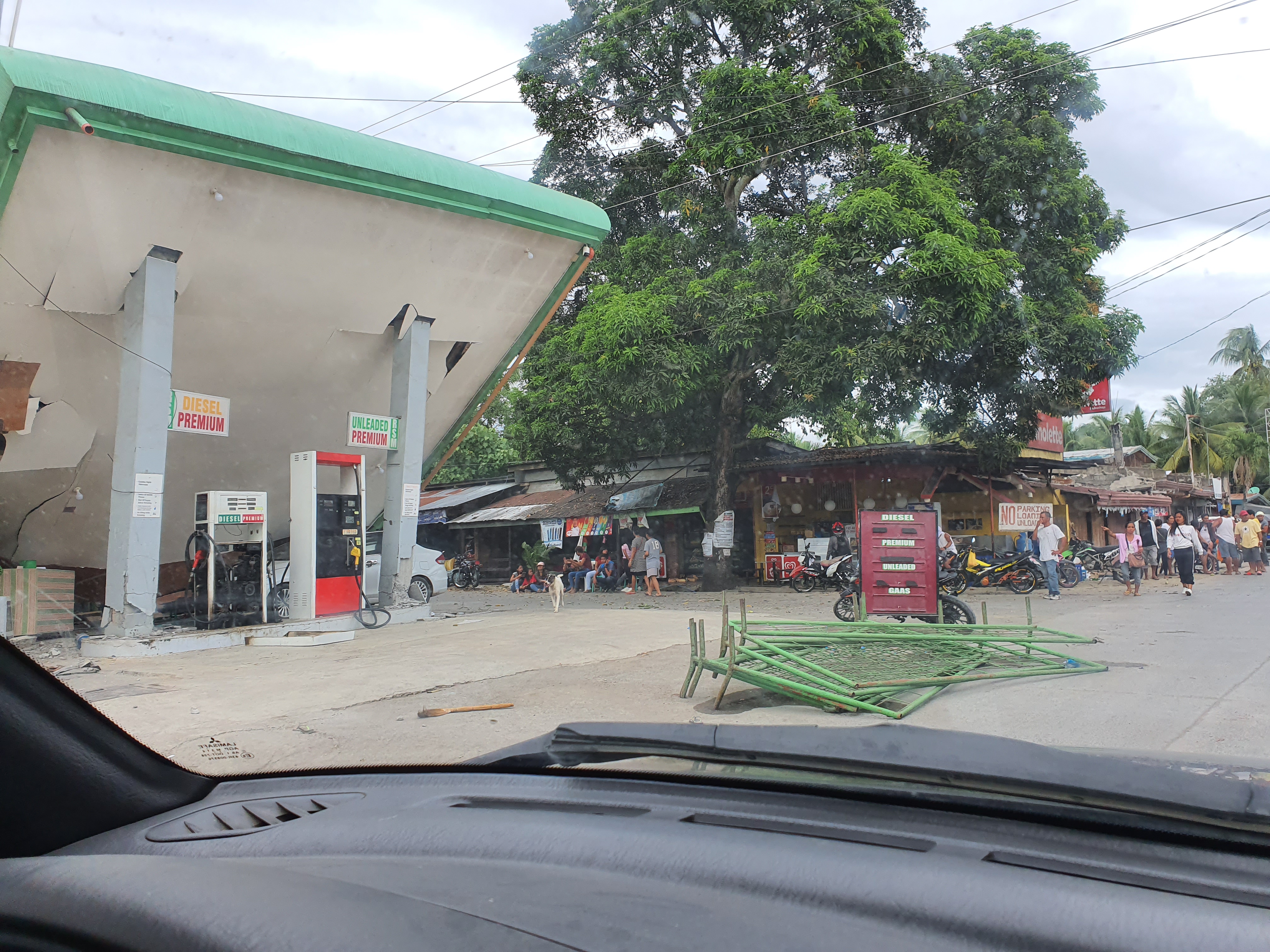The perimeter fence of the Elementary school was reduced to useless rubble. The market place was filling up with people trying to make sense of what just happened. We saw a car pinned down at a gas station.