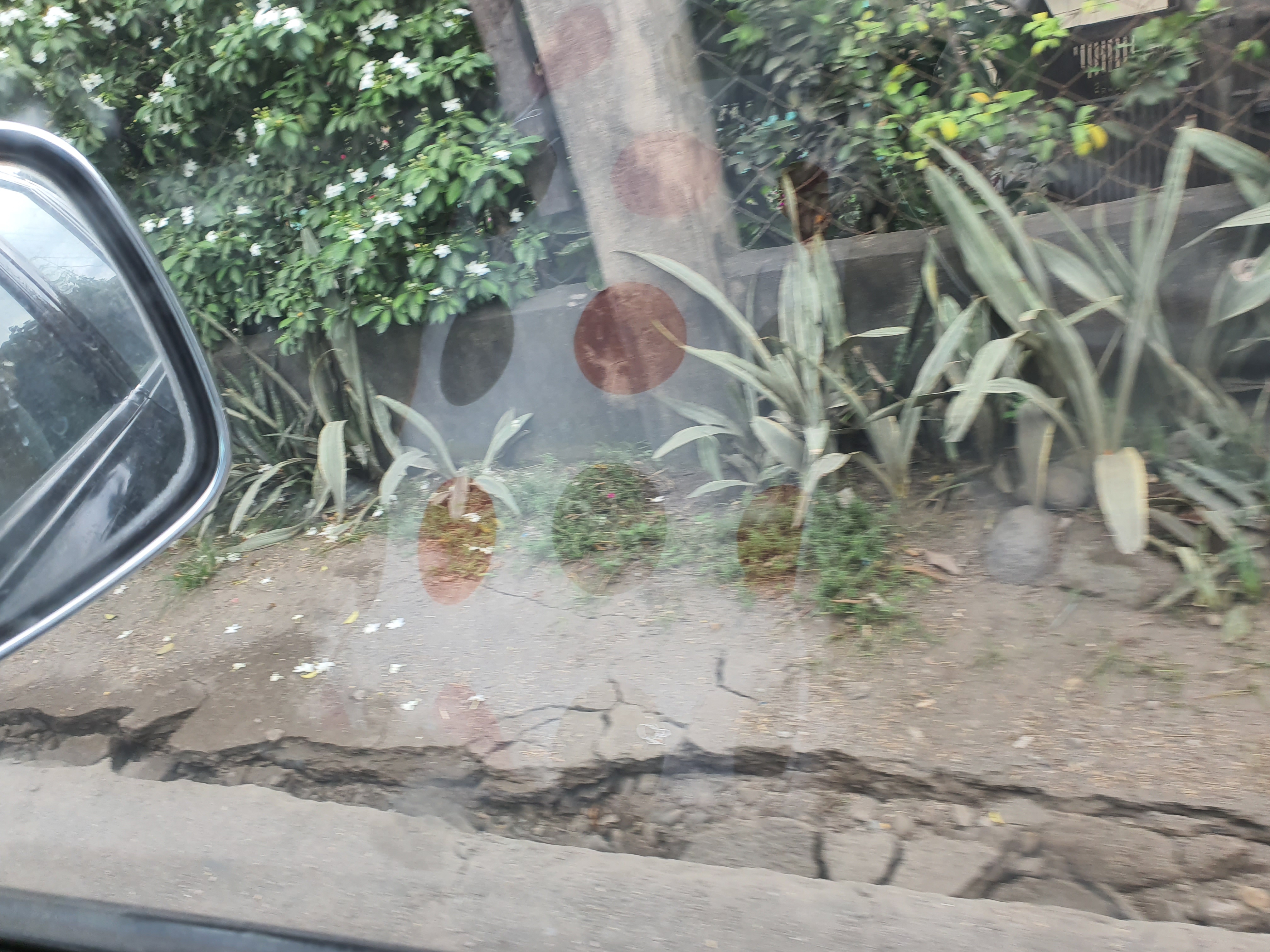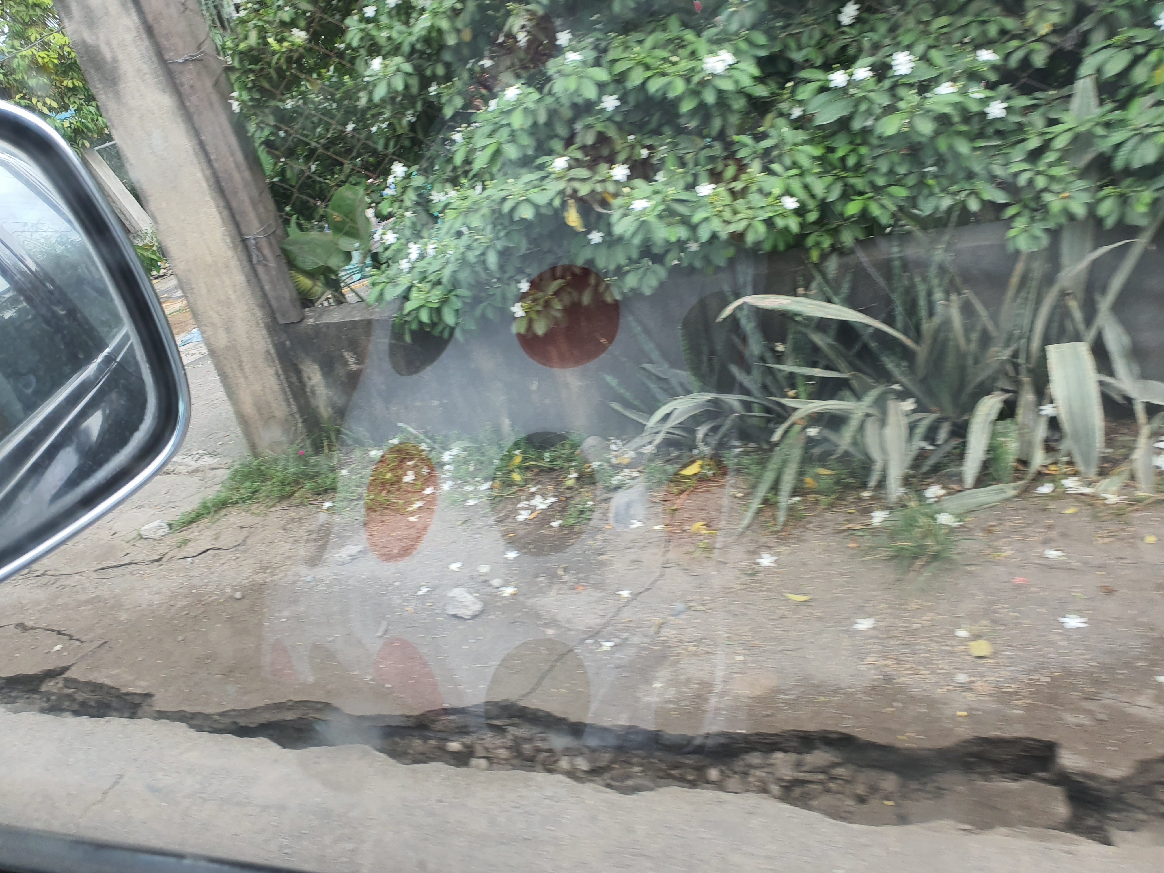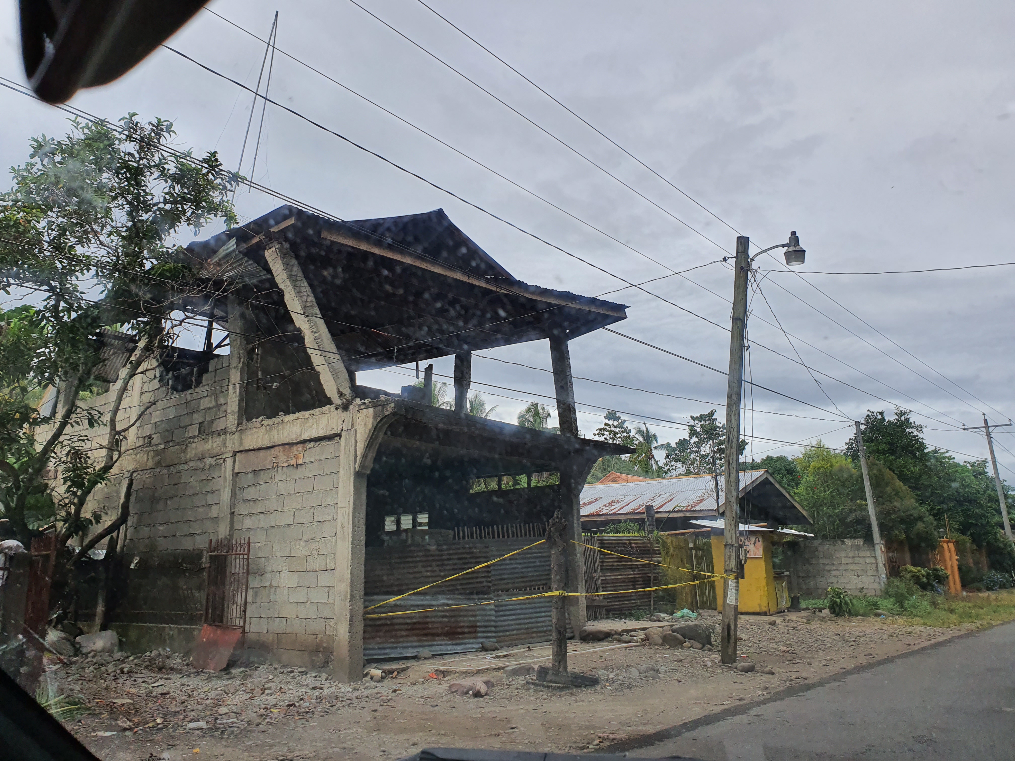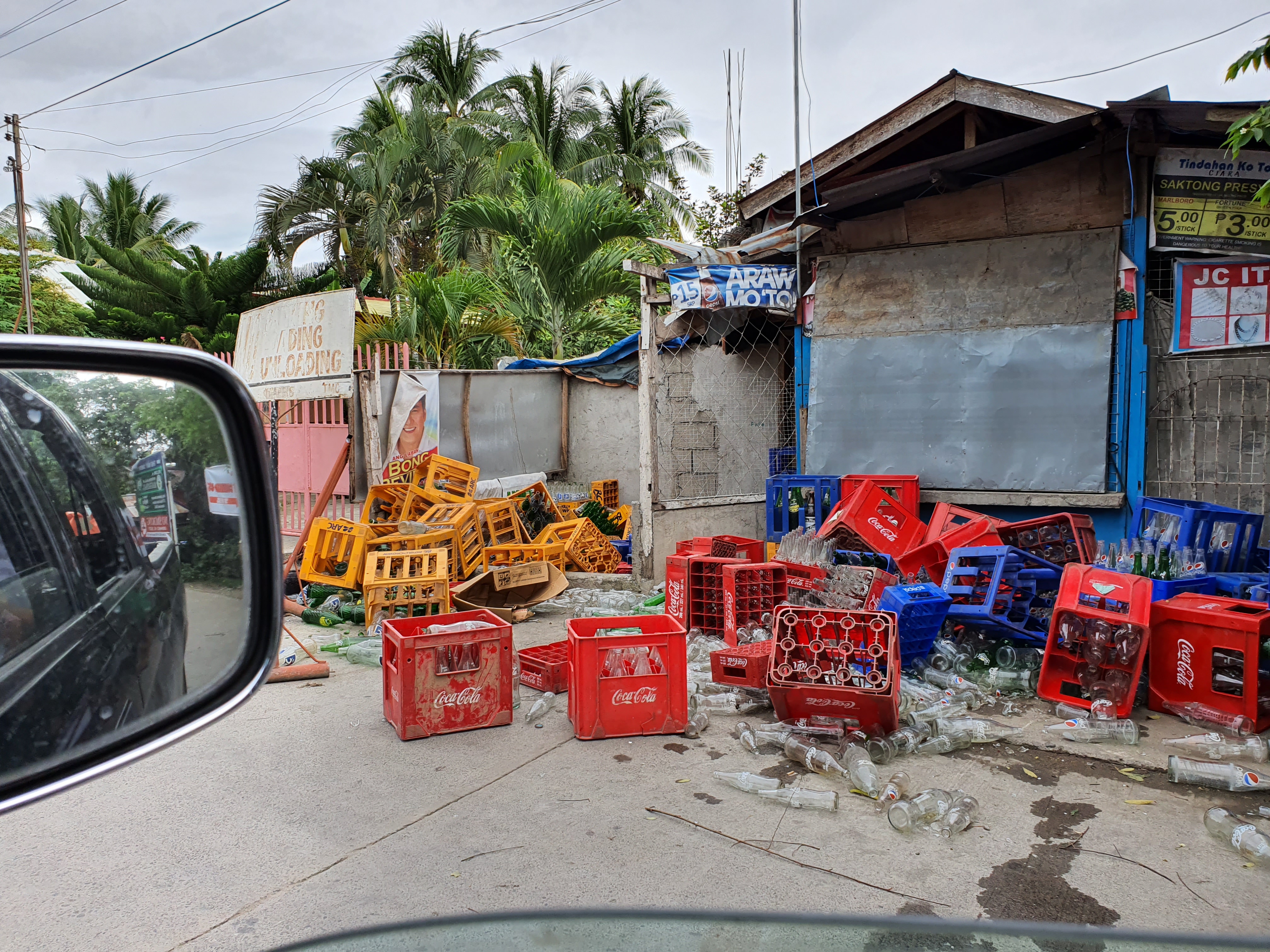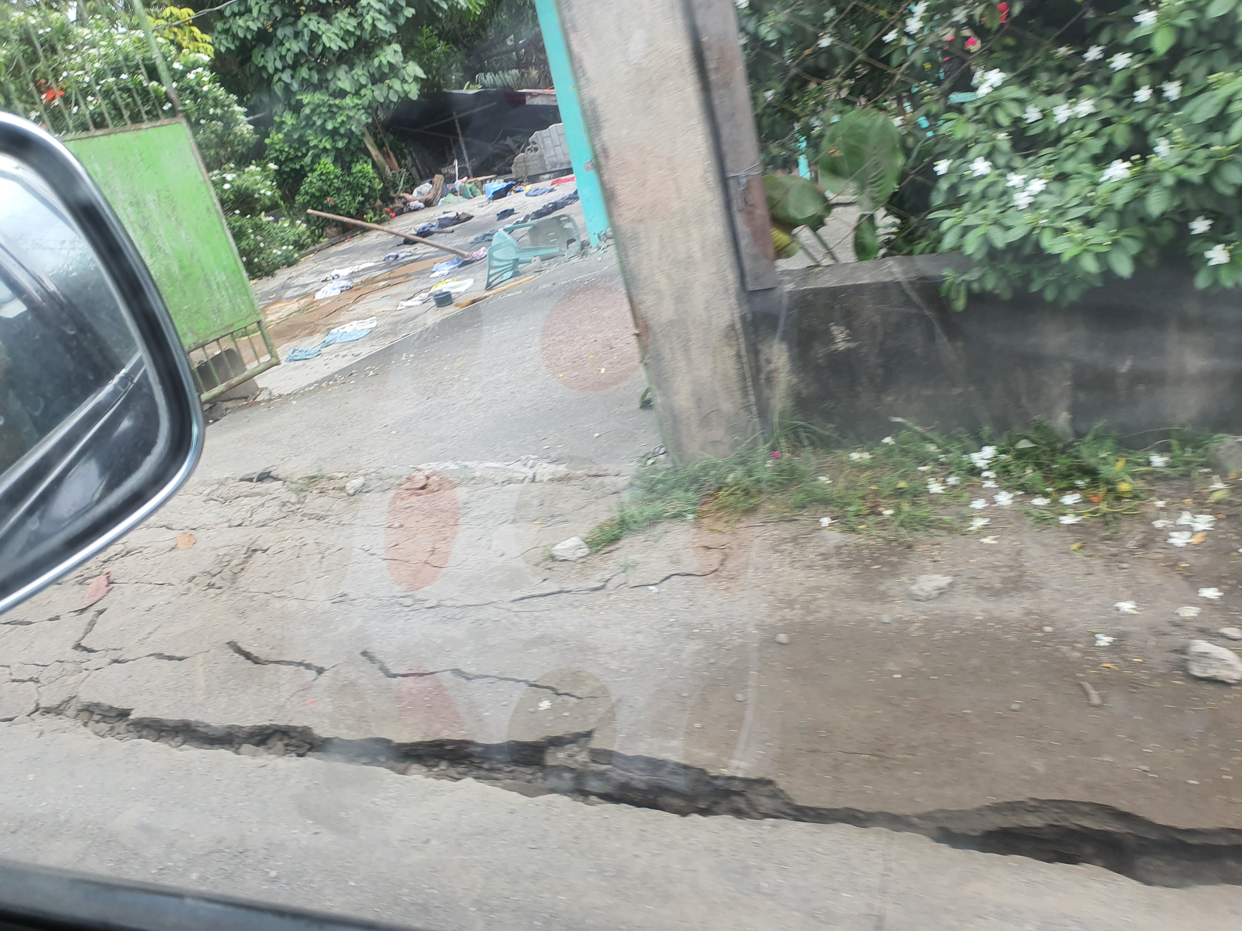 The perimeter fence of the Elementary school was reduced to useless rubble. The market place was filling up with people trying to make sense of what just happened. We saw a car pinned down at a gas station.